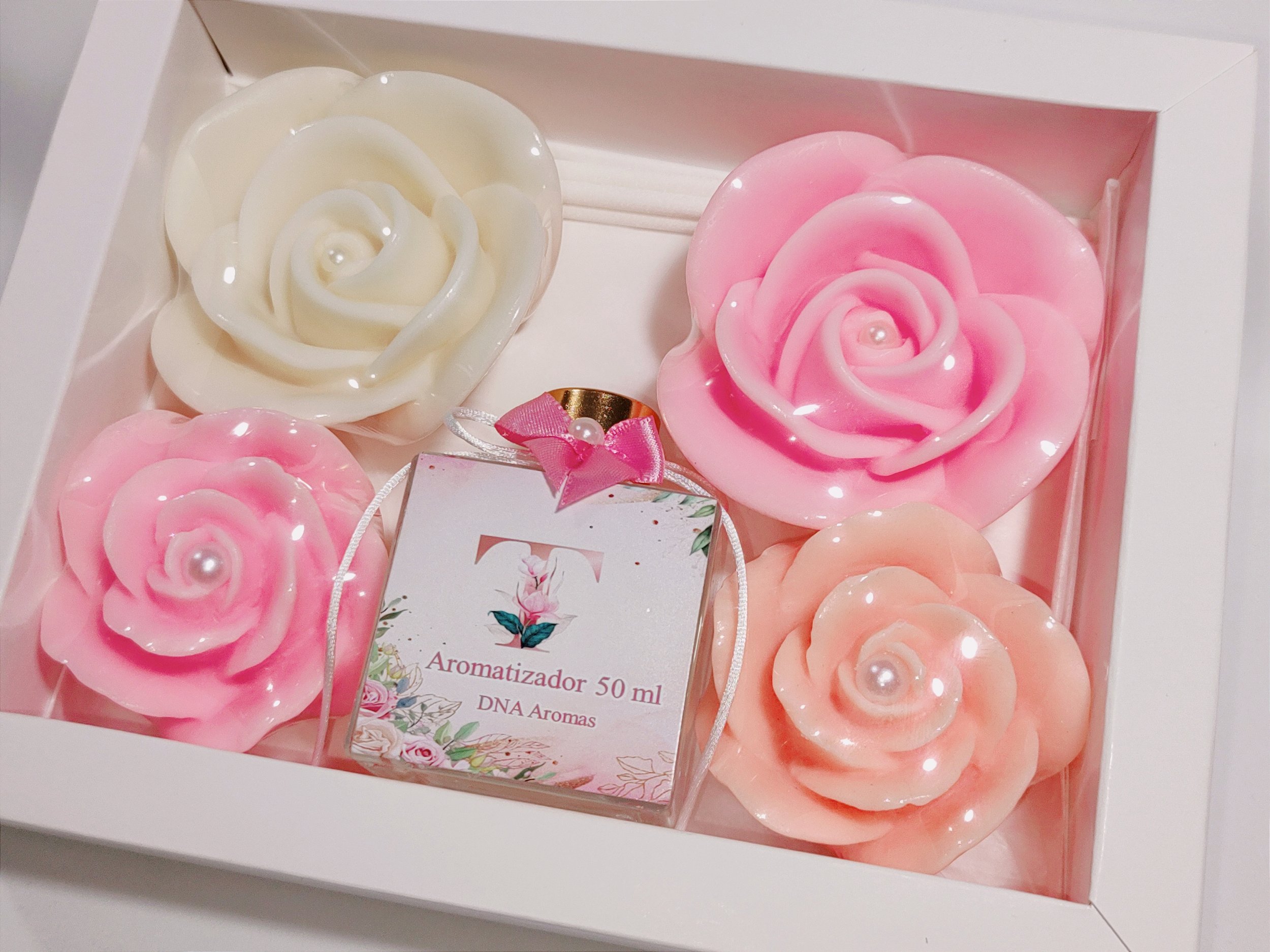 Kit Presente de Aniversário: Aromatizador Cubo 50ml com Sabonetes Flores
