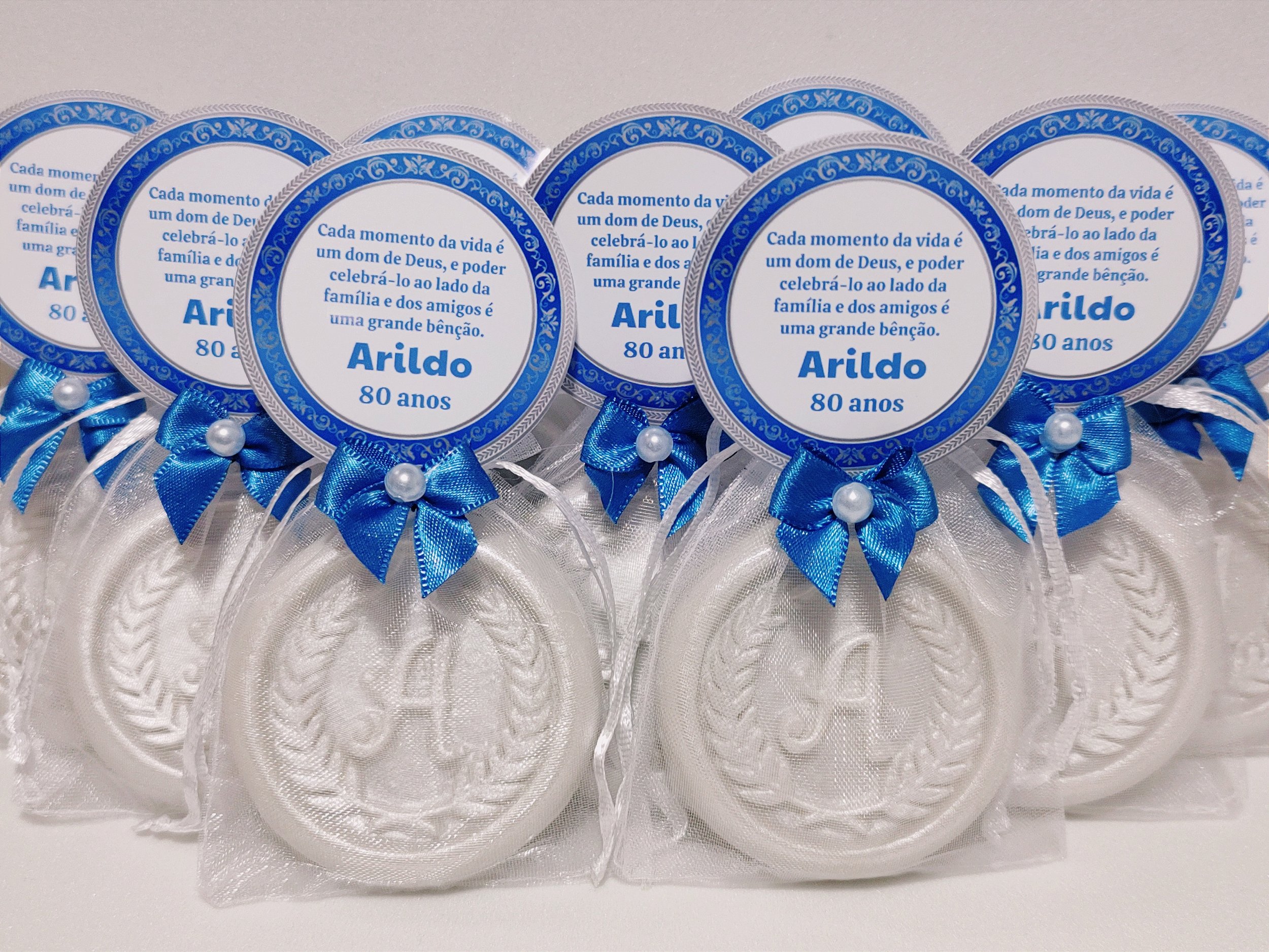 Lembrancinha 80 Anos Masculino: Sabonete Letra Inicial do Nome