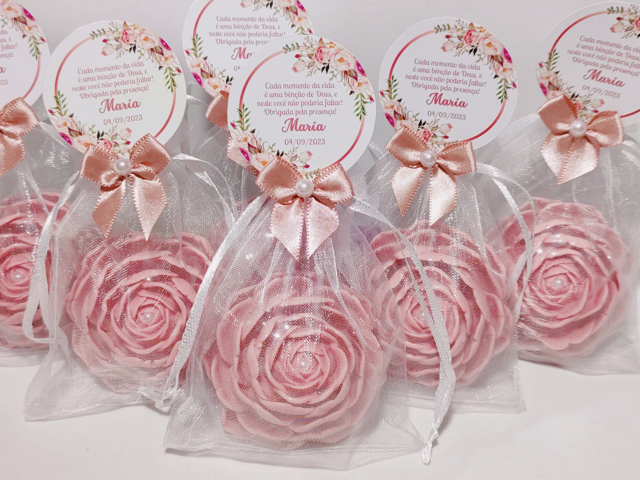 Encante seus convidados com a Lembrancinha Sabonete Rosa Delicada Luxo.