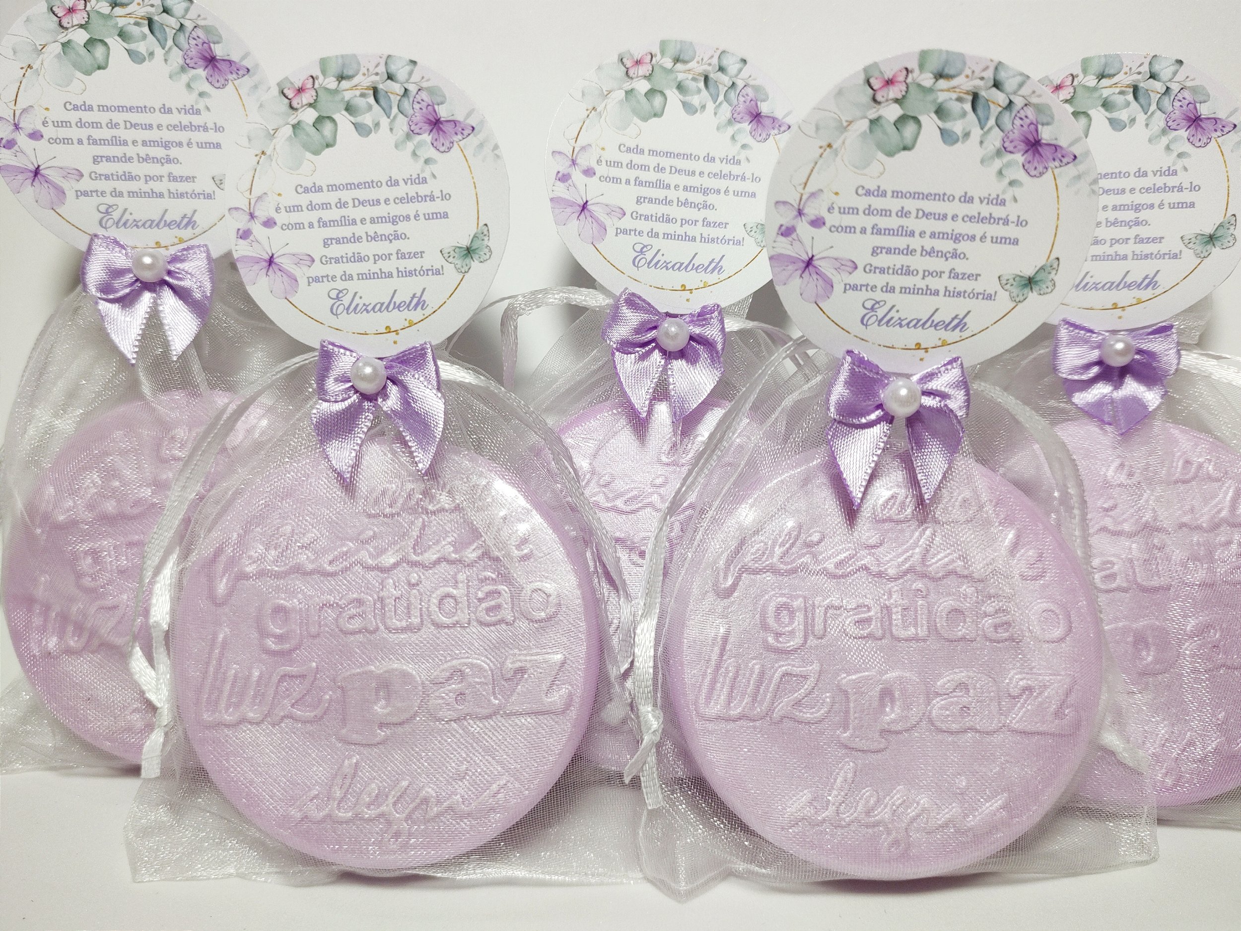 Lembrancinha Perfumada: Sabonete Redondo Desejos de Gratidão G.